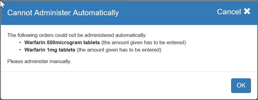 This will be sent as a zero (0) give dose at the scheduled time of administration. This is to allow the care team to check the yellow anticoagulant book for the latest INR results.