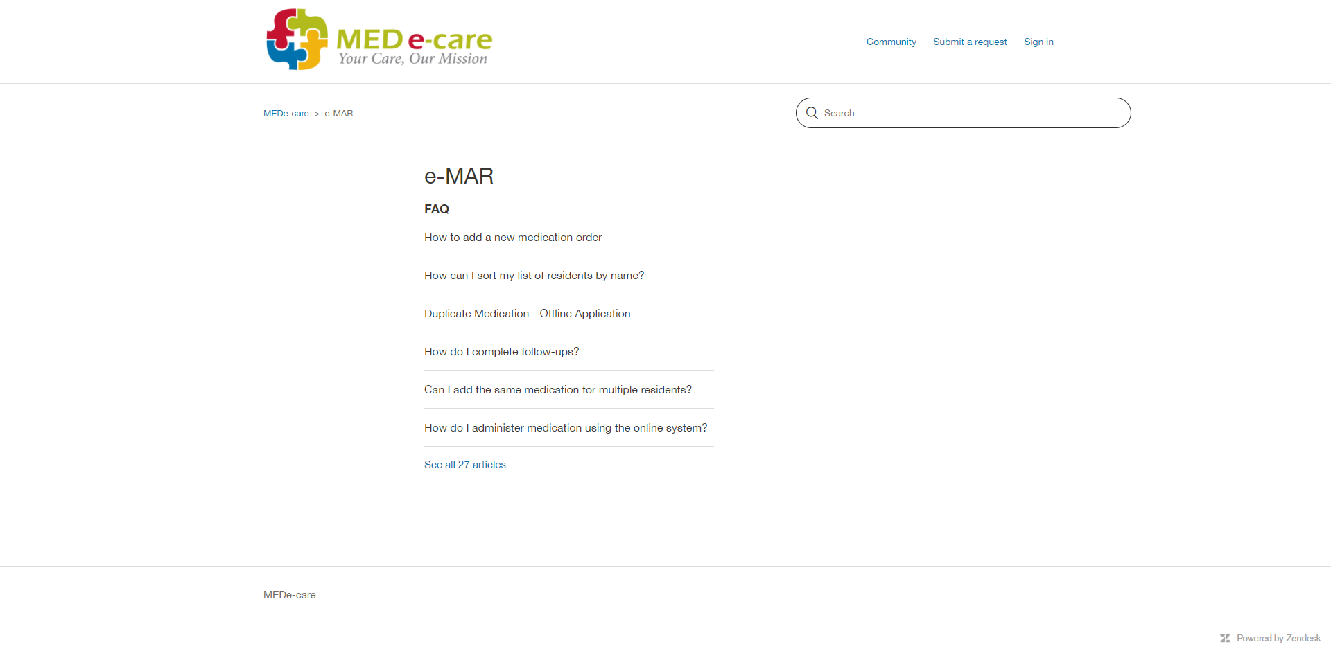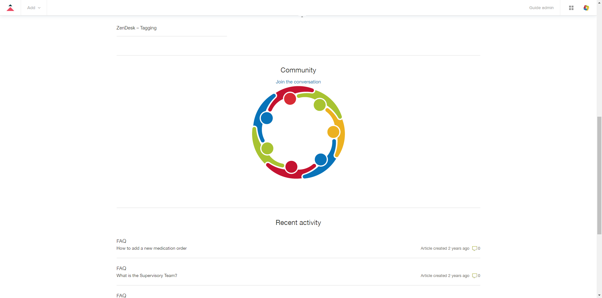 3. As you scroll down the page, you will see the Community section. This is a place for clients to post any questions or queries they have, which cannot be found in any existing articles.