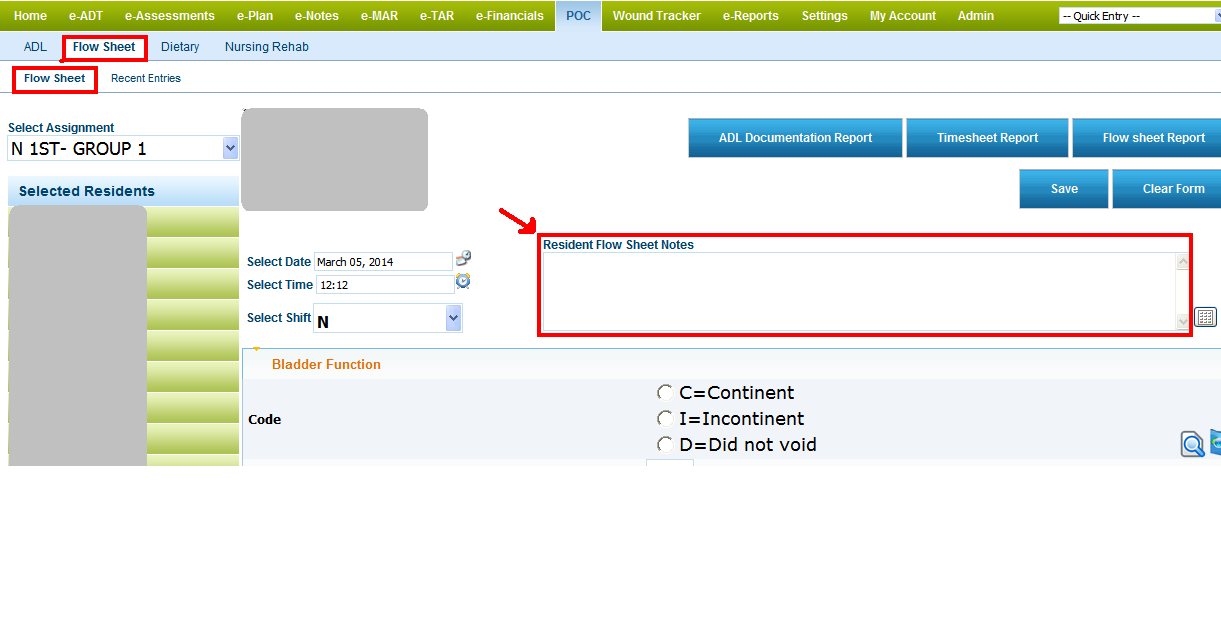 2. The note field will appear in POC > Flow Sheet. It should appear to any user who has access to POC.