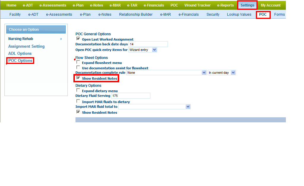 1. Go to: Settings > POC > POC Options, then check on the 'Show Resident Notes' option.