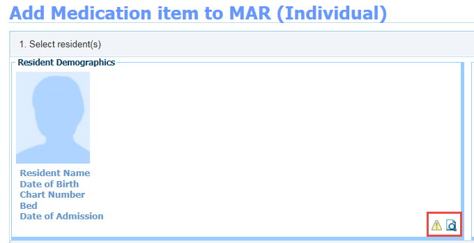 4) To select a resident so we can add the medication to their MAR, click the magnifying glass to search for residents.