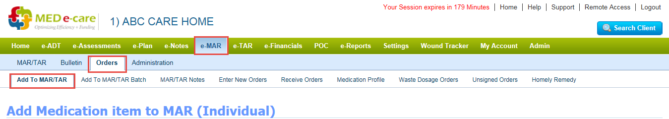 3) Make sure Add to MAR/TAR is selected on the white bar.