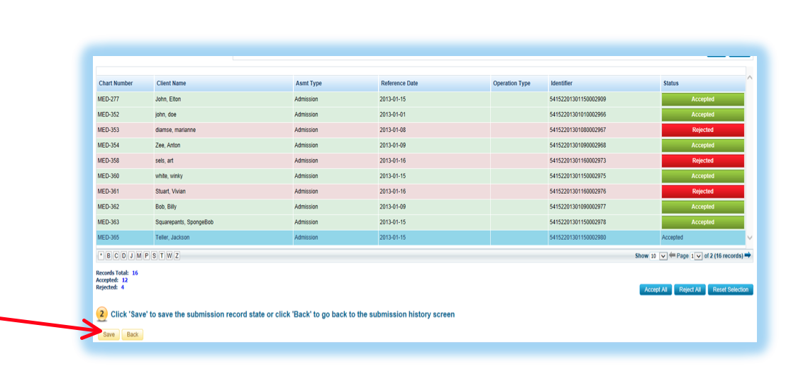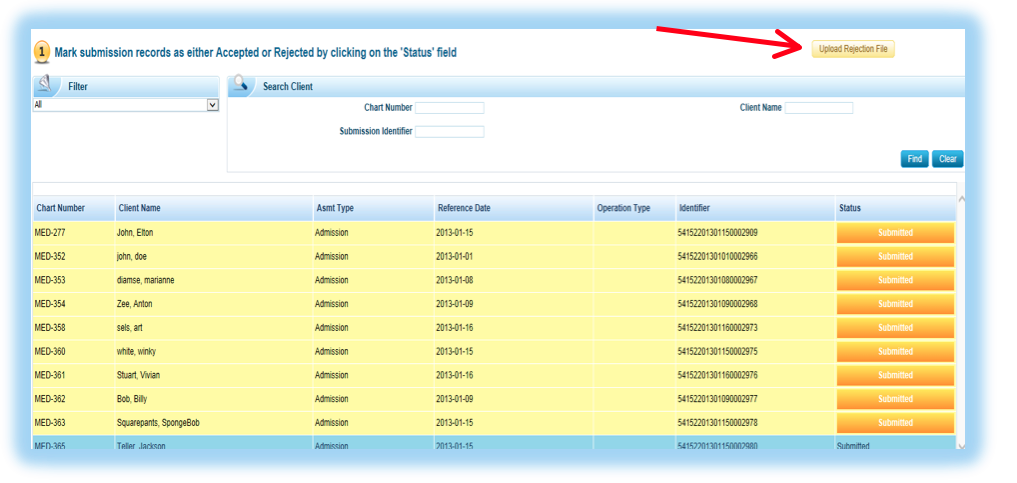 By uploading the report, the system will automatically mark your submissions as “Accepted” or “Rejected” based on the data from the CIHI report.