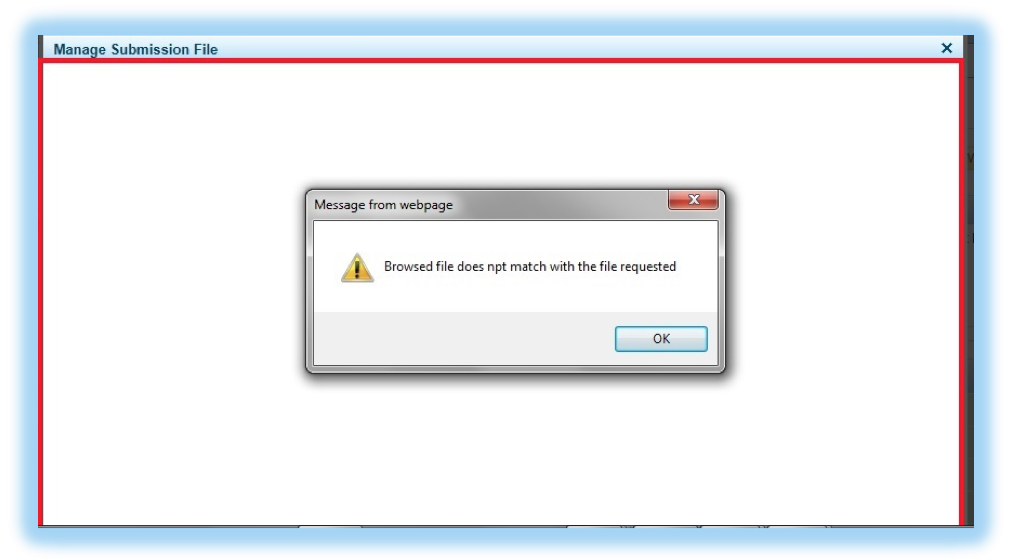 The system will then validate the file. If you accidentally uploaded a file belonging to another submission record you will receive the following message: