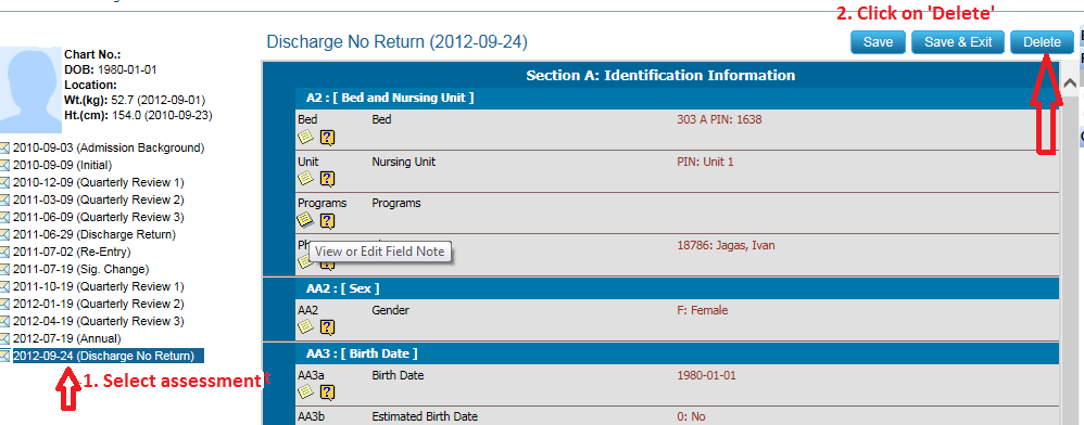 1. Go under e-Assessments > CCRS > Open the assessment for the resident