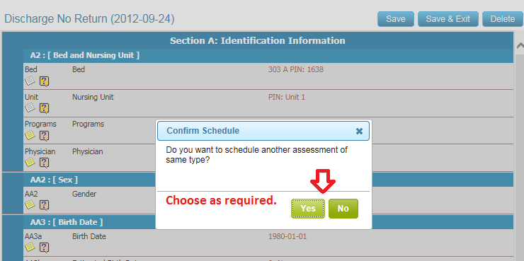 4. If you wish to complete the same assessment after sending the delete record, choose Yes otherwise No.