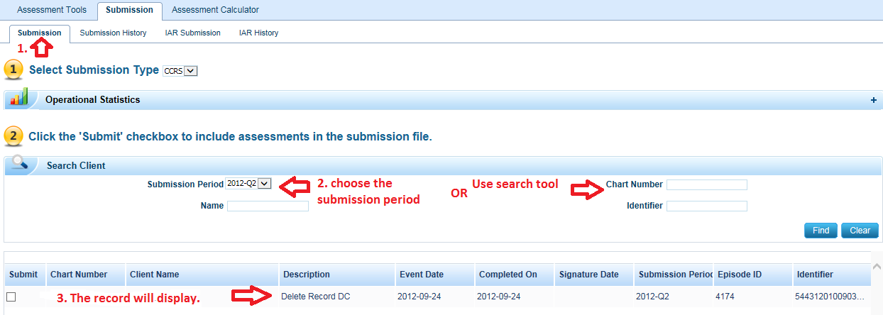 -Search the delete record by name or chart number or submission period.