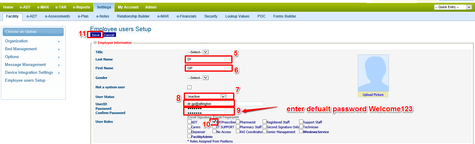 Go to: Setting > Facility > Employee Users Setup
