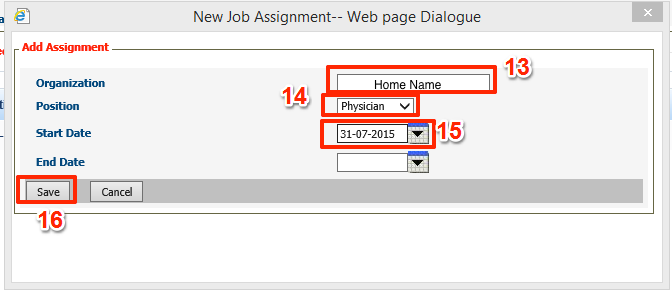 Note: When the Physician is no longer a user at the facility, change the account status to ‘Inactive’ and put an ‘End Date’ on the Assignment. This action will disable the Physician name from the Physician drop down name list as of the end date.