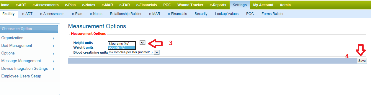 1) Go under Settings > Facility > Options > Measurement options.