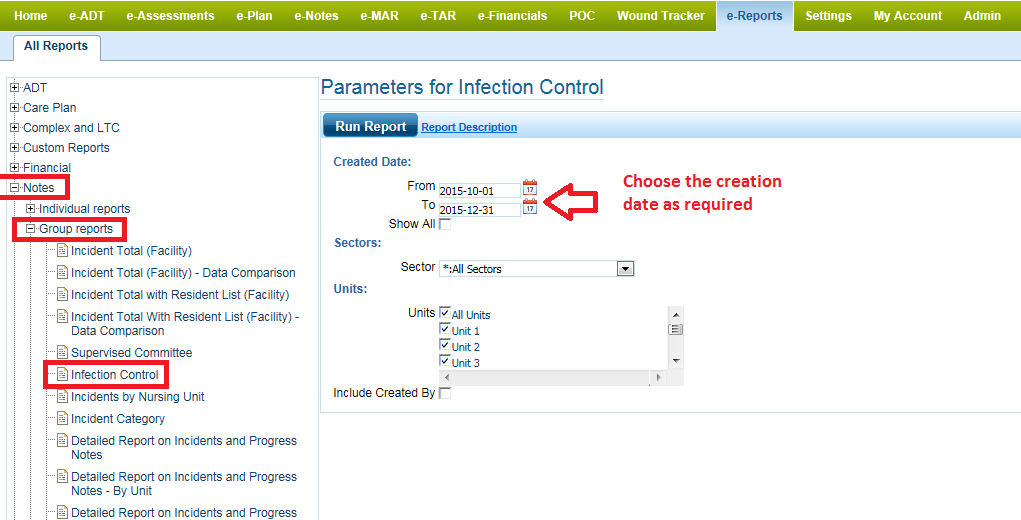 How do i run report that shows infections of the residents? Manpreet June 19, 2020 12:02 Updated Follow 1) Go under e-Reports > Notes >Group reports >Infection Control 2) Choose the parameters as required and 'Run Report'. Comments 0 comments Article is closed for comments.