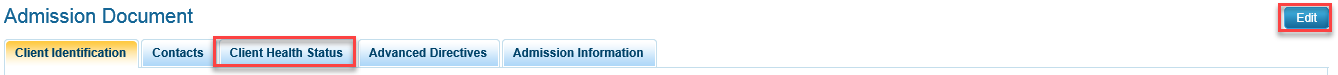 5) If the above message doe not show or once you have added the signature, use the Client Health Status tab to update the allergies and diagnosis. Information in other tabs can also be updated if needed.