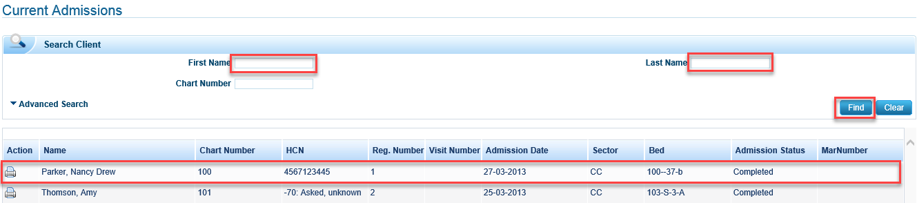 2) Find your resident by typing in their first name and last name and then clicking the blue Find button or select them from the list.