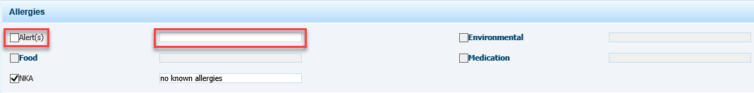 6) Allergies can be updated by using the tick boxes and expansion fields. Tick the box if the resident has that allergy and use the field on the right to give additional information about that allergy i.e Food - Strawberries