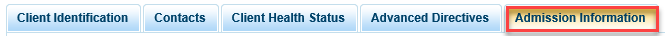 10) Once you have finished updating the resident information, click the Admission Information tab.