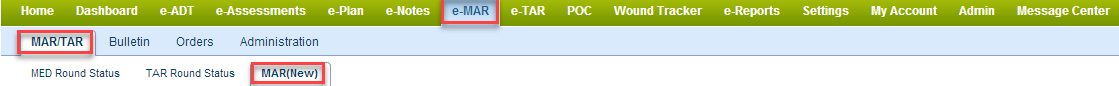 1) Login and click on e-MAR within the green bar.