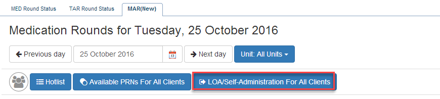 2) Click on LOA/Self-Administration For All Clients.