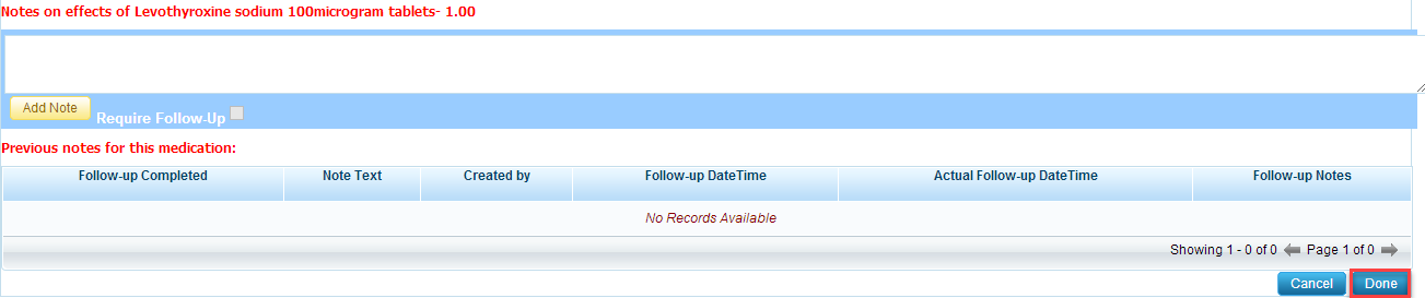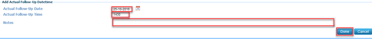 5) This will bring up a new window where you can change the date and time of when the follow-up was completed (if needed) and add any notes. Click Done once you have finished.