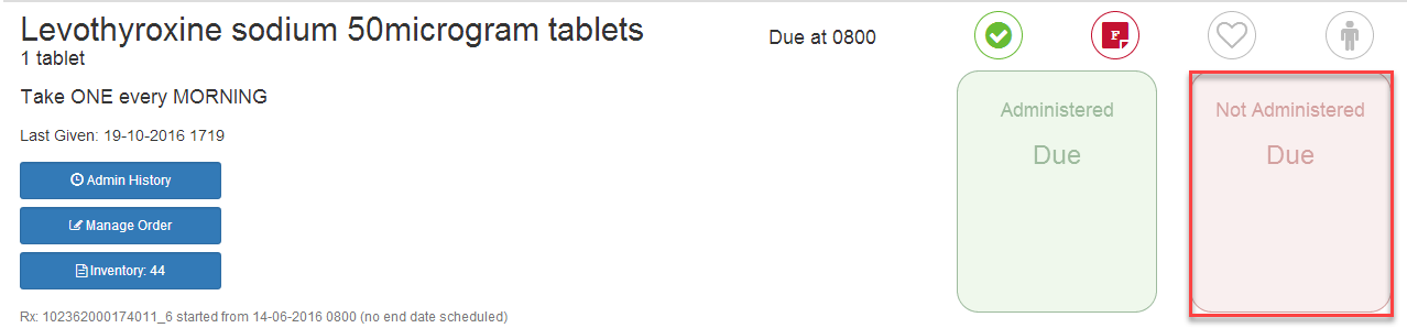 3) Once you click Save you will see an overview off all the information entered in the not administered box.