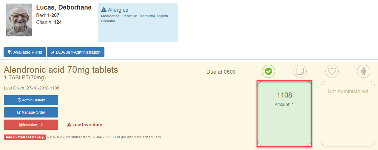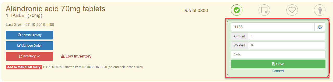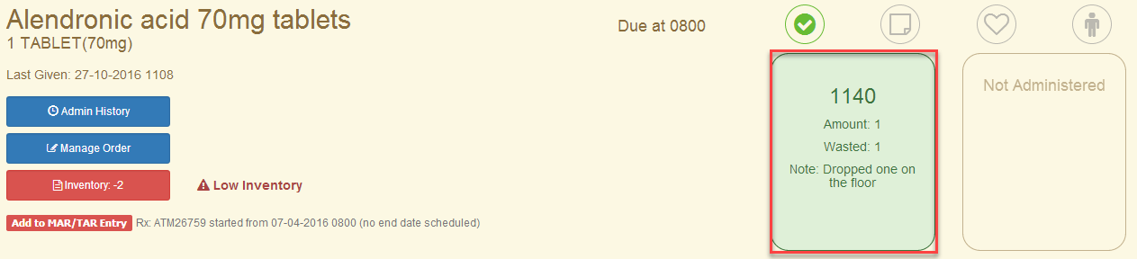 5) Your MAR record for this medication has now been updated.