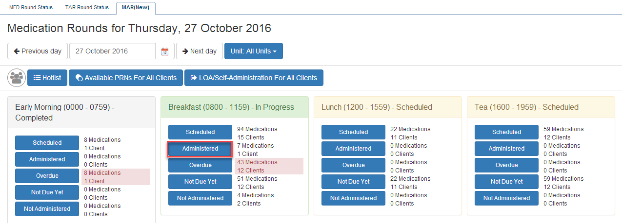 1) Find the appropriate medication by clicking on Administered under the appropriate round.