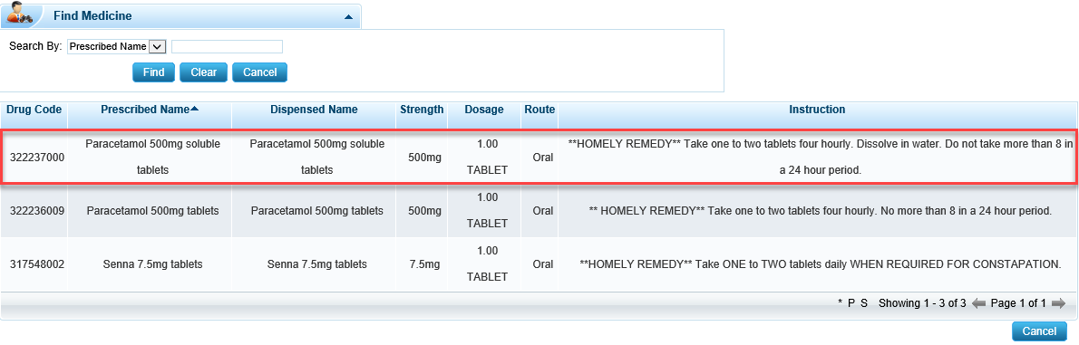 3) Click on the magnifying glass to select your medication from the list of homely remedies.