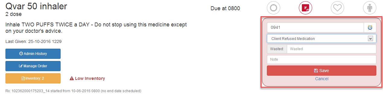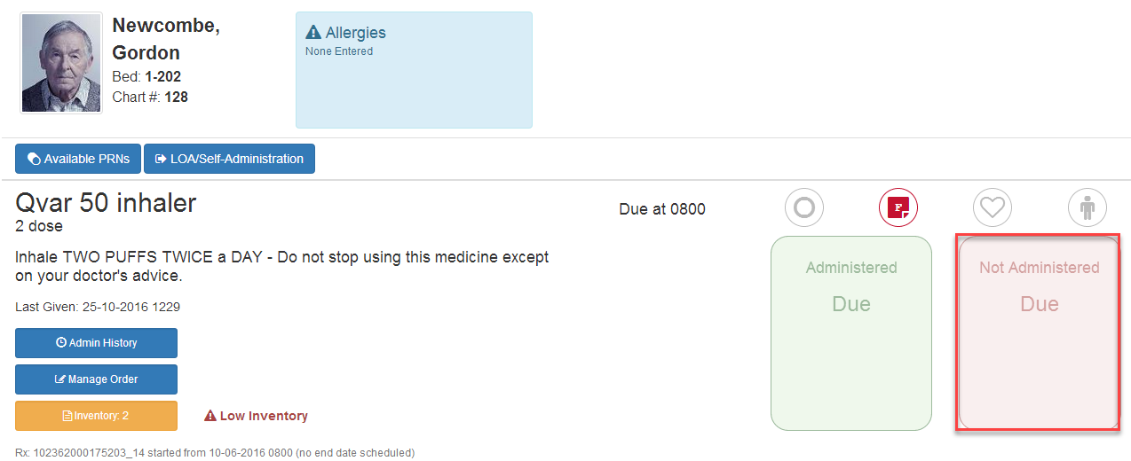 4) This is what your not administered medication will look like once you click save.